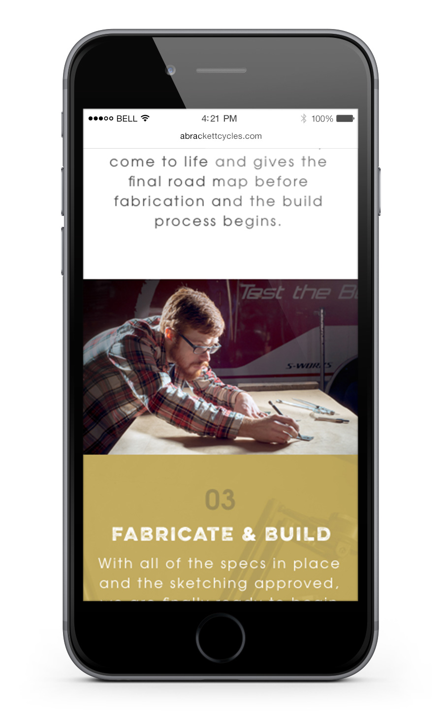 Ashton came to me with the need to tell his story and to show his expertise in a new portfolio website. The goal was to show the raw and highly customized process that Ashton provides for each client. Showing examples of previous builds and revealing their specs to the audience helps to build confidence in the buyer. Additionally, we discussed the importance and power of customer approval, so we added a clear testimonial section on the homepage to instill confidence in potential future customers.