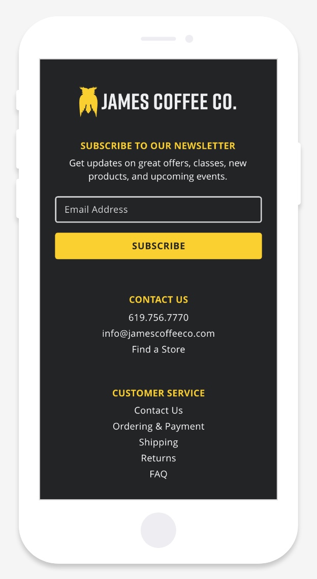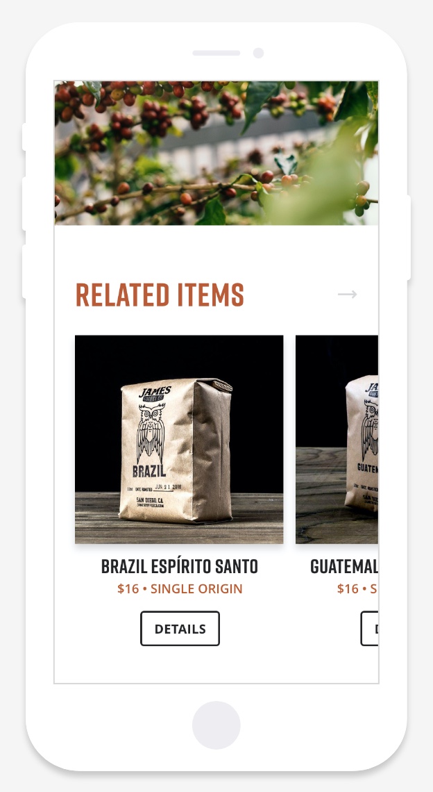 I follow a photographer by the name of Peter McKinnon on social media and he does promotional work with James Coffee Co., a premium coffee roaster in San Diego. When I lived in SD, I ended up trying their coffee and looking more into their brand and website. I liked the idea of their brand but felt like the presentation of their website needed a little love. I was inspired to create a personal project to address some of the branding and usability issues that I had encountered with their current site. My goal was to make the site more lively and contemporary while giving the customer a better user experience.